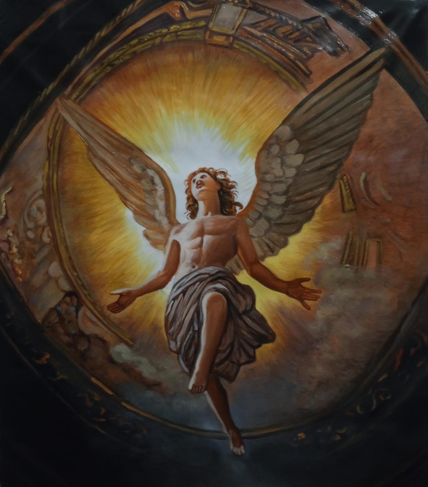 The Divine Ascent Captures A Luminous Angel Rising Toward A Radiant Halo Of Golden Light. With Its Elegant Wings, Flowing Drapery, And Ethereal Glow, This Artwork Brings A Sense Of Serenity And Grandeur To Any Space. A Striking, Timeless Centerpiece Designed To Elevate Modern Luxury Interiors.